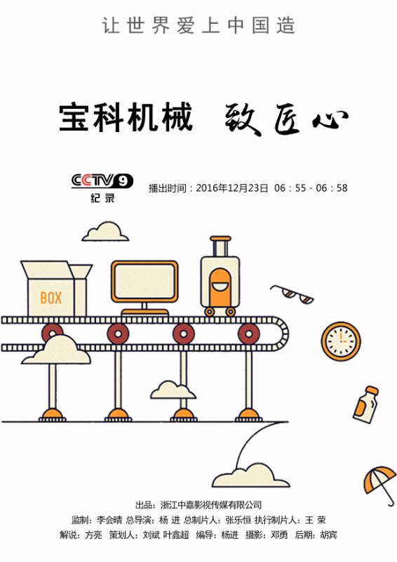 央視9套紀(jì)錄寶科12月23日鉅獻(xiàn):寶科機(jī)械 致匠心